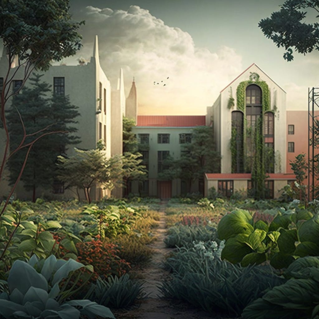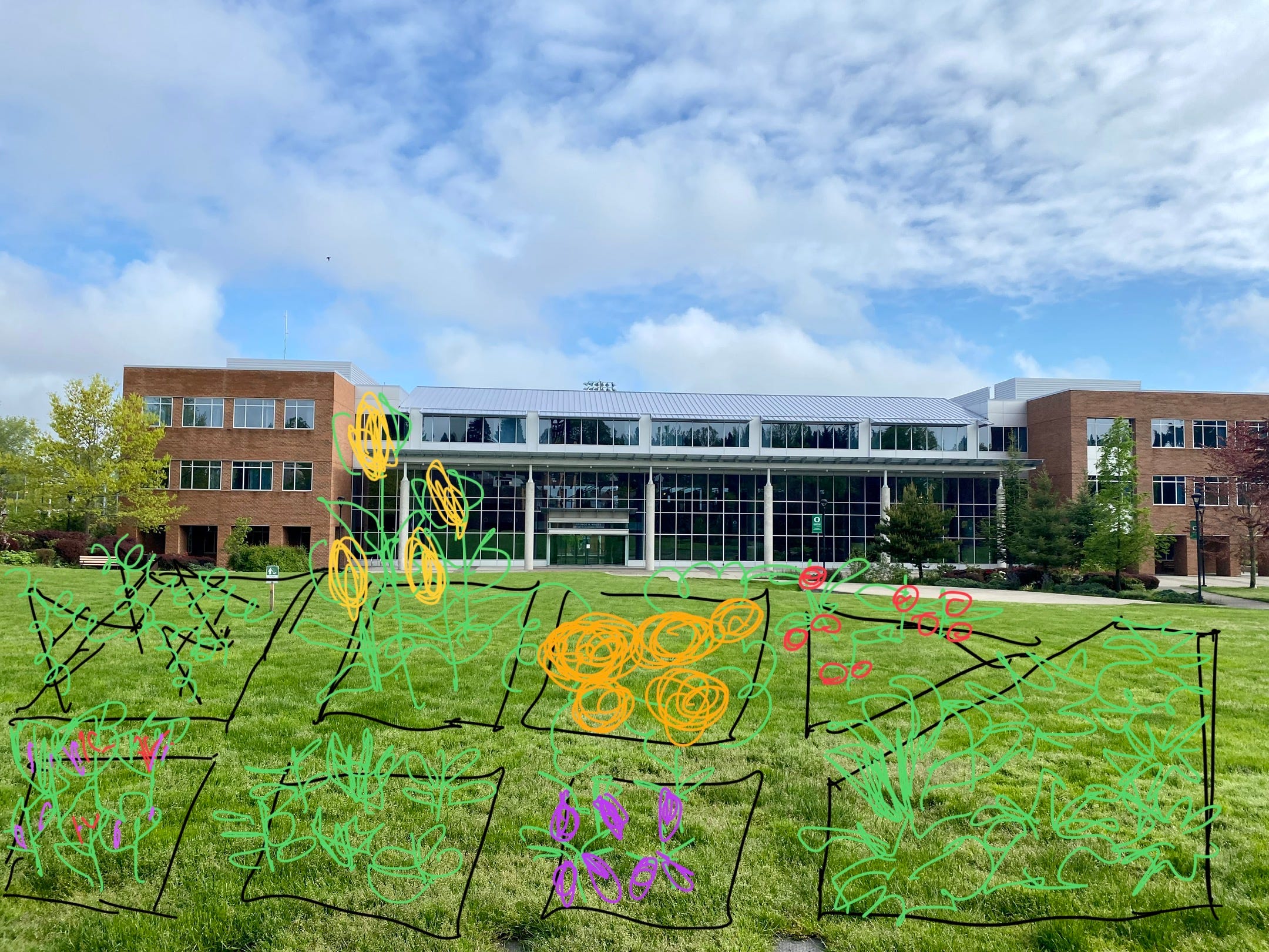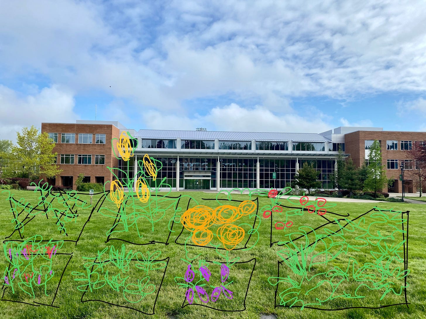 What I re-envisioned at first was the grass, that huge expanse of water-sucking turf. Couldn’t it be more useful than a place for a hypothetical student to sit down on a rare sunny day in the spring or fall? What about a community garden? What about rows of tomatoes and lettuce and squash and all of the things that could serve the greater community? And then those dorms next door. Couldn’t those be turned into communal housing? Couldn’t the library serve as more than a place of study and be more of a space of community and connection?